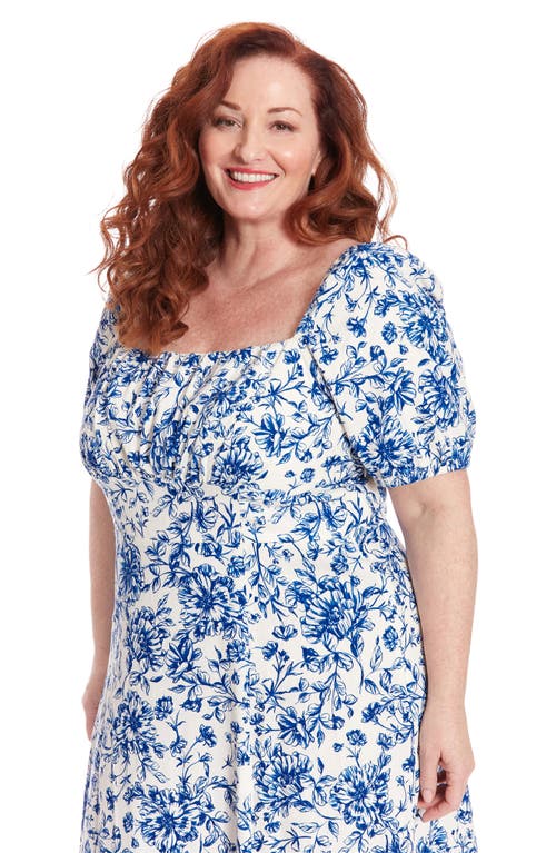 Flowers bloom across a breezy linen-blend midi dress fashioned with pretty puff sleeves, an elegant Empire waist and an airy front slit. 43" length Hidden side-zip closure Square neck Short sleeves with elastic cuffs Partially lined 55% linen, 45% rayon Machine wash, dry flat Imported