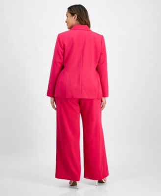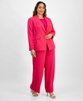 TAHARI ASL PLUS SIZE SINGLE BUTTON CREPE BLAZER KNIT T SHIRT WIDE LEG PANTS
