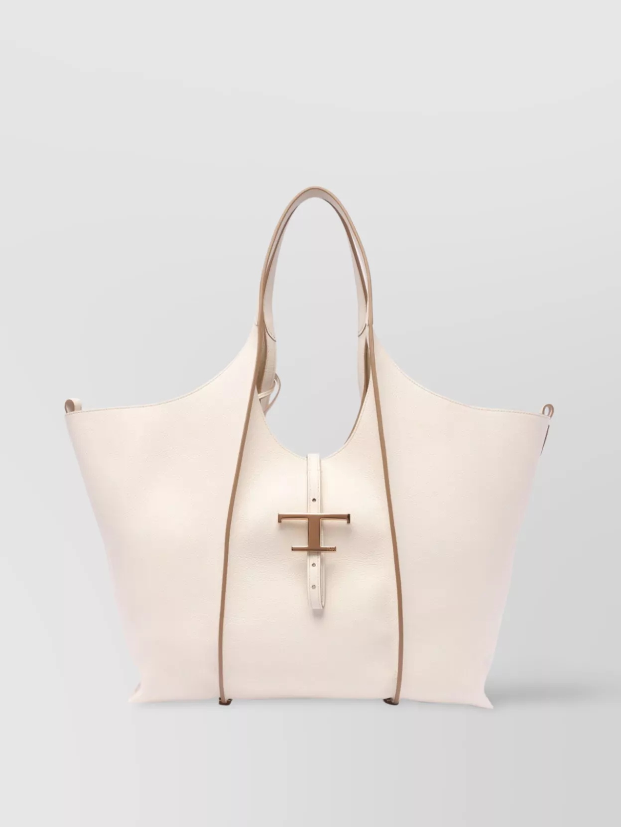 Open top | Two handles | Top handles | Contrast trim | Inner pouch removable with zip | Detachable pouch | White T-timeless medium shopping bag | Clip lace closure